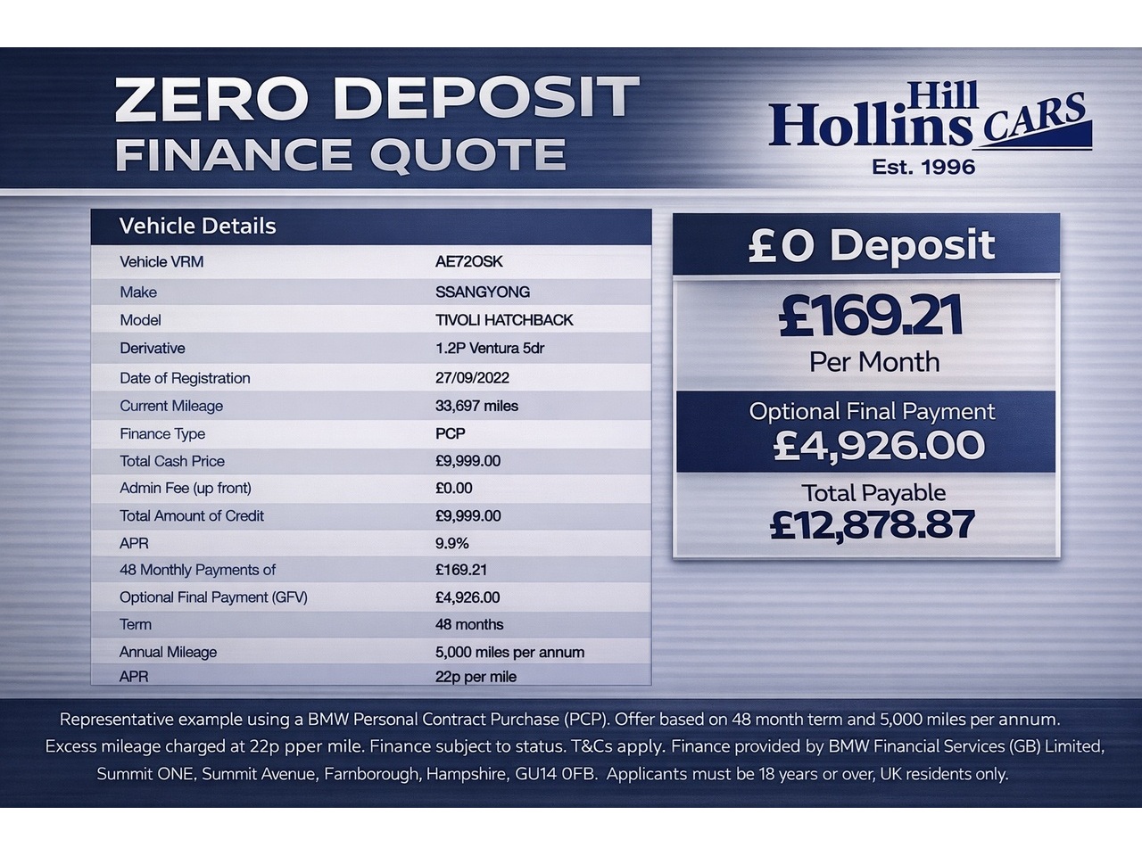 Competitive HP & PCP finance options are available, with no deposit required (subject to status). Please contact us for a personalised quotation tailored to your budget.